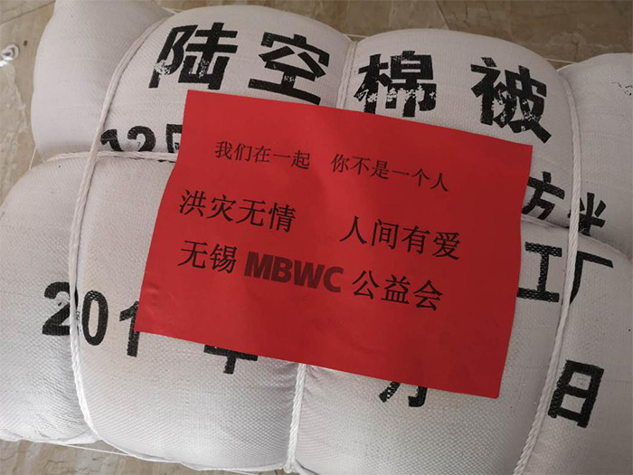 洪災無情,人間有愛。無錫MBWC公益會是一個由社會各行各業的愛心人士組成的公益組織,將會繼續致力于各種公益活動,初心永摯,勇擔重任,為那些需要幫助的人貢獻自己的力量。